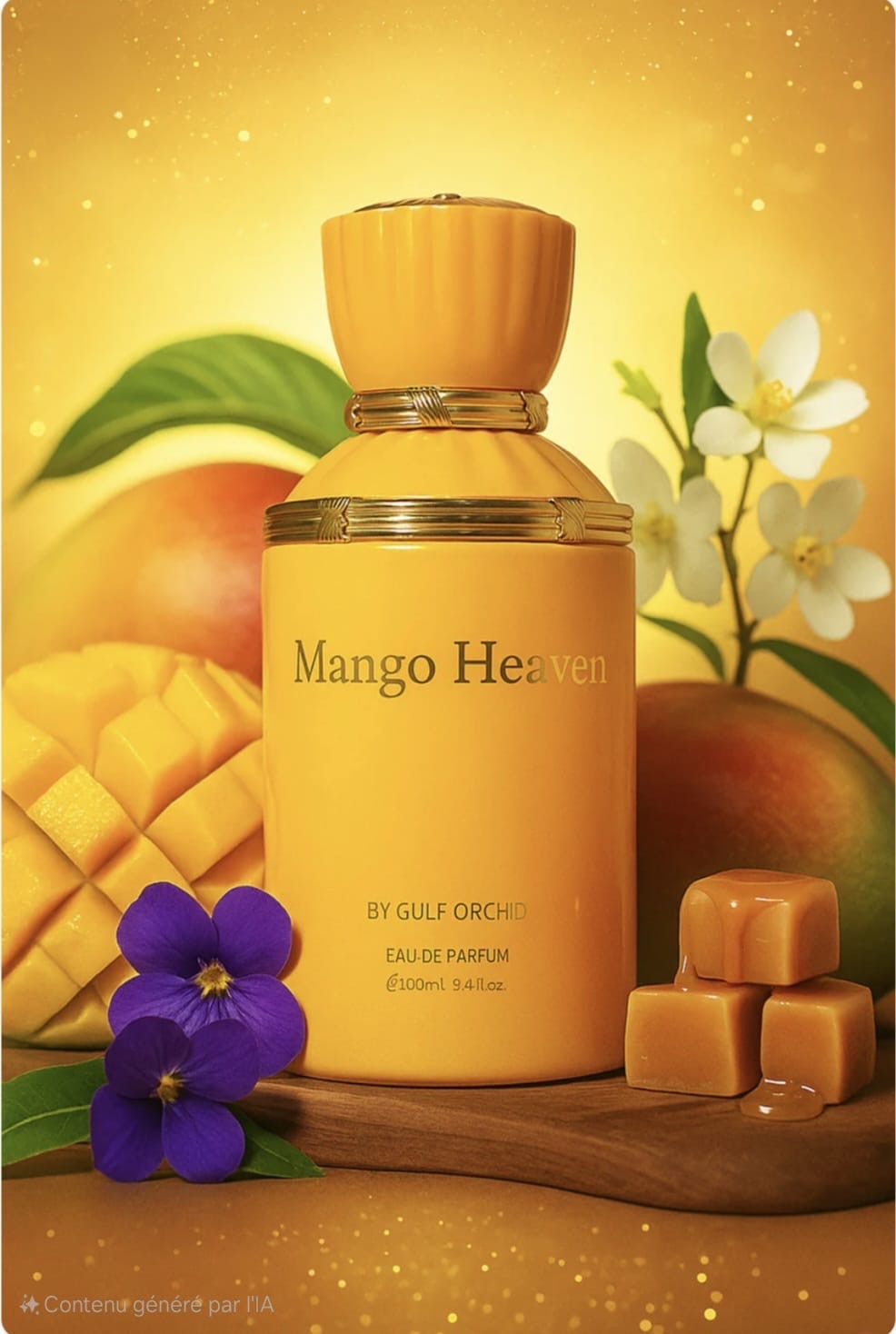 Mango Heaven est une création unisexe captivante qui marie fraîcheur tropicale et sophistication orientale.