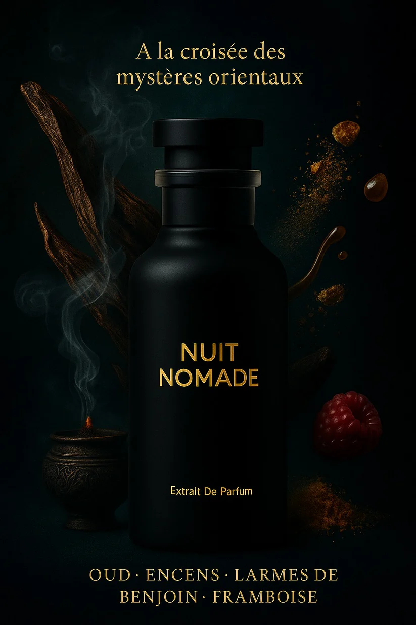 Ce parfum oriental-boisé-épicé, dont le sillage et la tenue reflètent le luxe et la richesse des traditions olfactives du Golfe. Nuit Nomade invite ainsi à un voyage sensoriel dans un univers chaleureux et mystérieux et à la fois moderne.